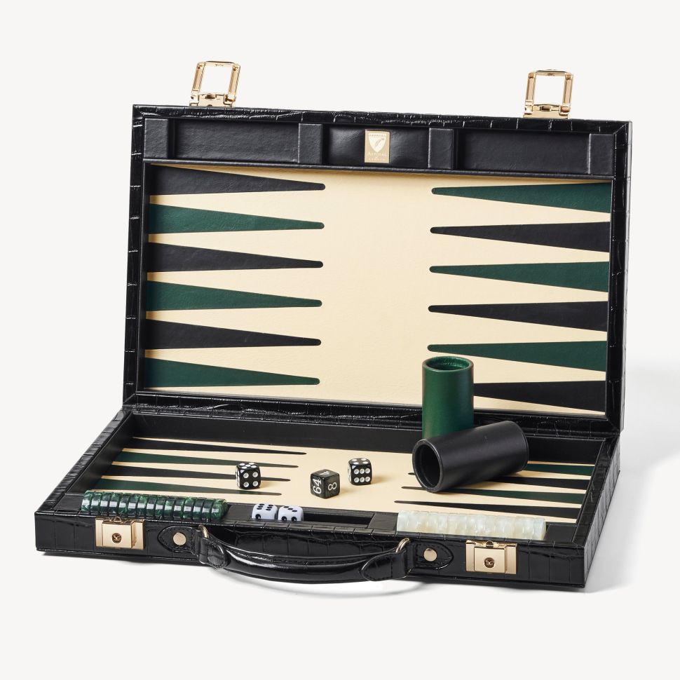- Aspinal of London 15-inch Backgammon Set in Deep Shine Black Croc