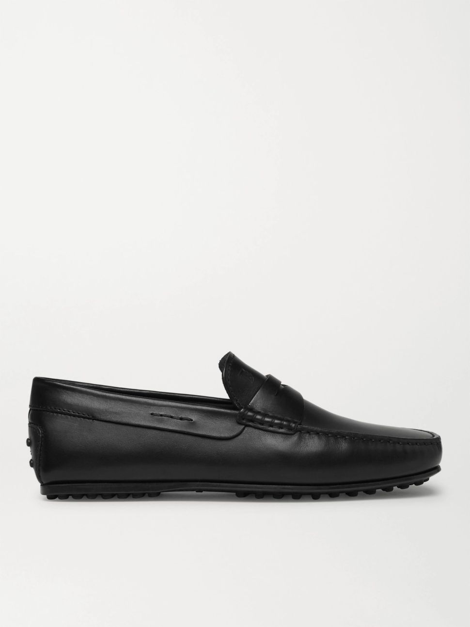 A classic black leather loafer, like the traditional Tod's, never goes out of style.