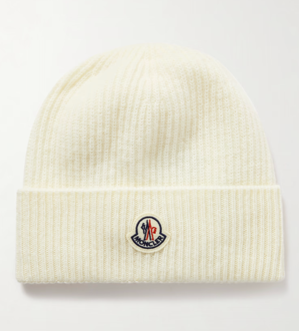 - Moncler Appliquéd Ribbed Virgin Wool and Cashmere-Blend Beanie
