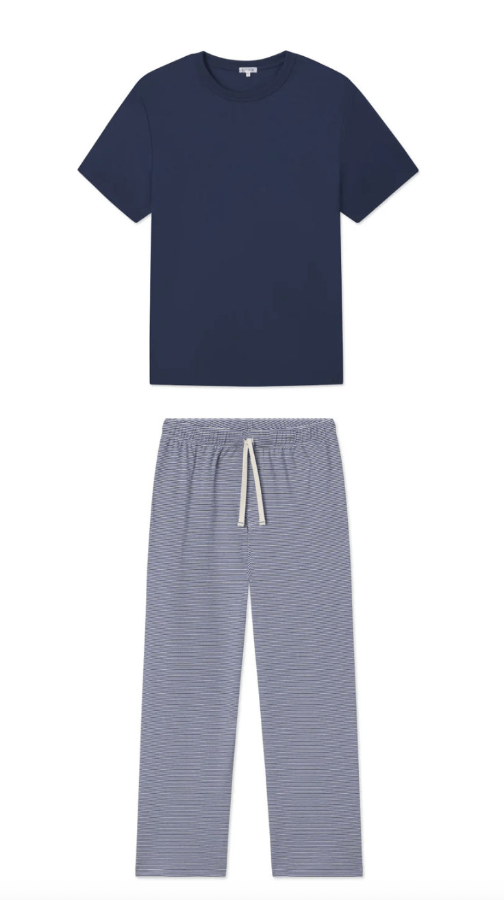 - Lake Pajamas Men's Pima Sleep Short-Sleeve Set in True Navy