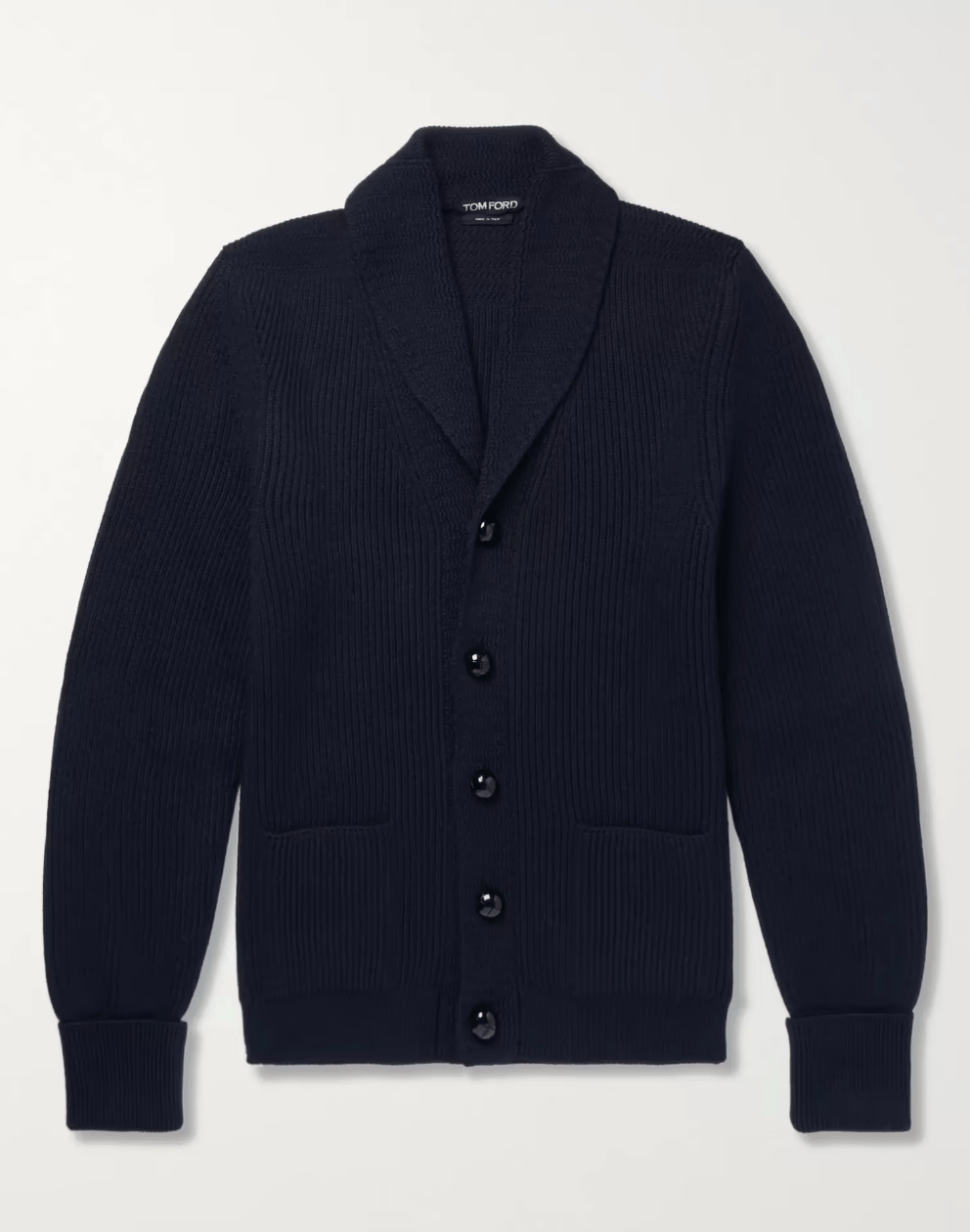 - Tom Ford Shawl-Collar Ribbed Wool Cardigan