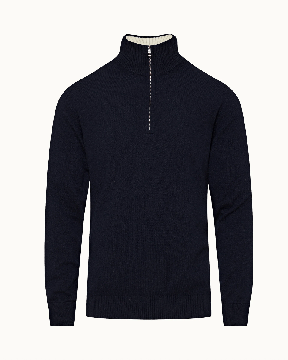 - Orlebar Brown Night Iris Tailored Fit Half-Zip Cashmere Jumper