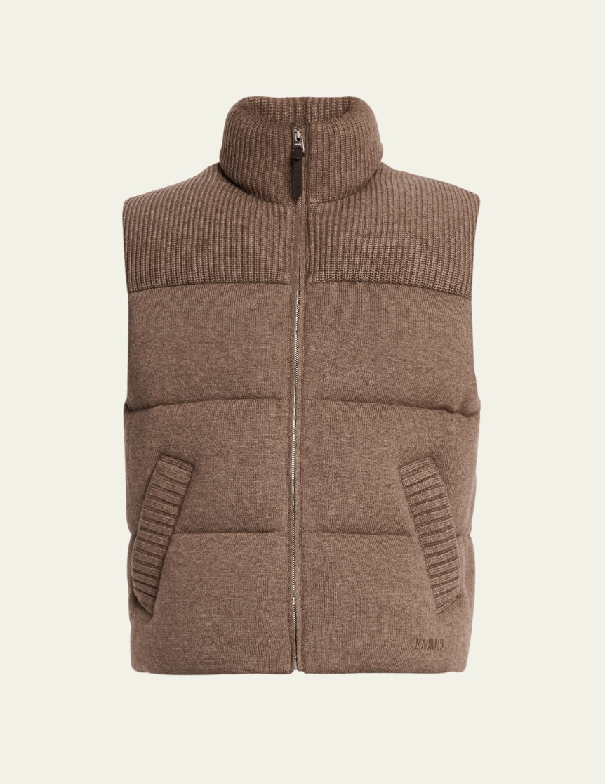 This is a far cry from that finance bro vest, okay? No, this Mackage piece stands in a league of its own, crafted from plush cashmere and wool for warmth, style and comfort. It's water-repellent and wind-resistant, with insulated waist pockets and a ribbed funnel collar. And of course, it's incredibly stylish—you might want to borrow this one, actually.