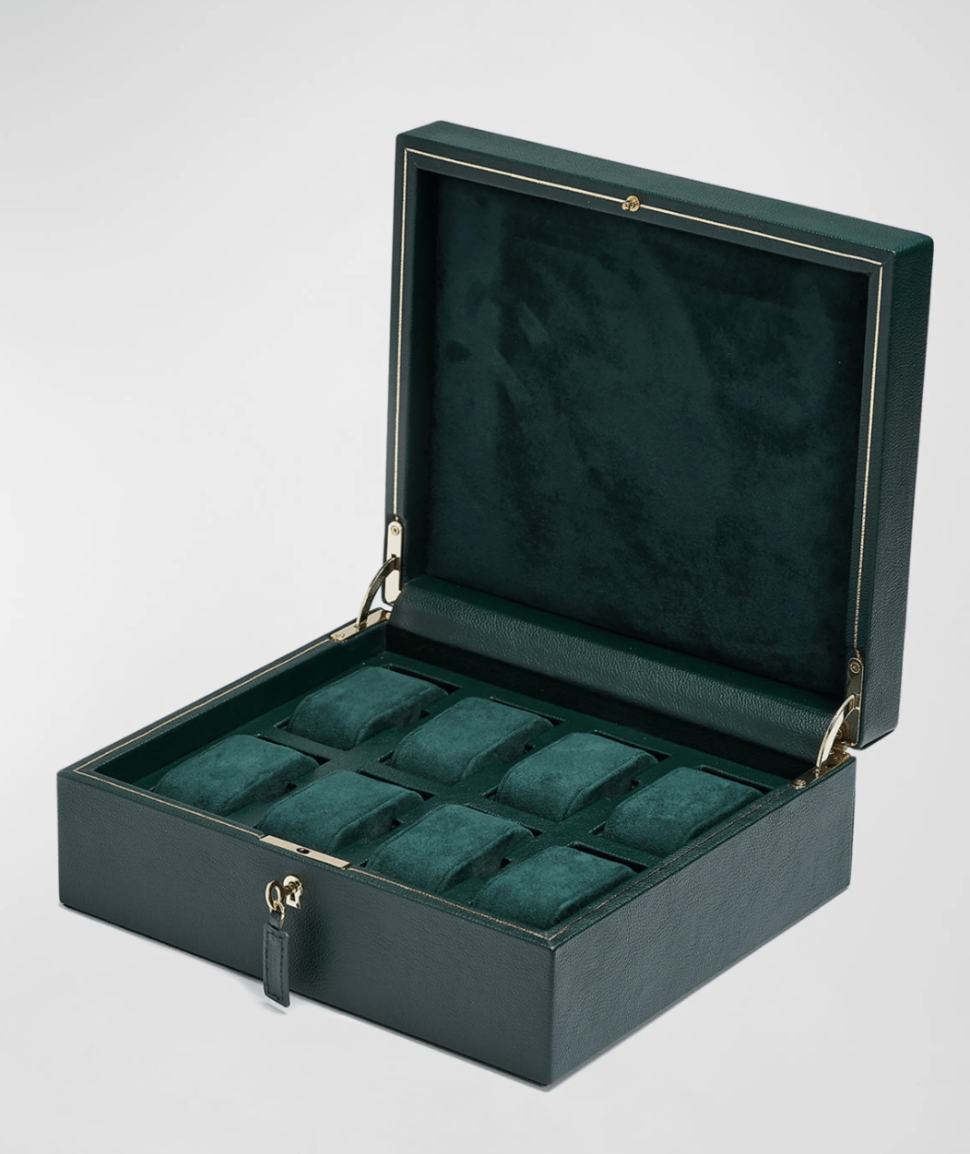 The horophile in your life will adore this British racing green watch box, made from a fine pebble grain leather with plush interior suede.